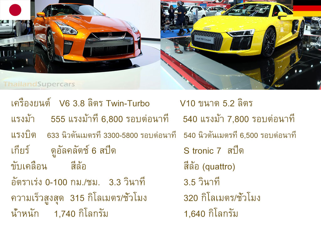 สวัสดีครับทุกท่าน บทความวันนี้น่าจะถูกใจสาวกซุปเปอร์คาร์หลายคน โดยเฉพาะผู้ที่ชื่นชอบเจ้าก็อตซิลล่าและเจ้า R8 วันนี้ทางแอดมินจะมาเทียบสเปคกันเเบบปอนด์ต่อปอนด์ของเจ้าซุปเปอร์คาร์ทั้งสองคันนี้ ว่าใครเหนือกว่าหรือด้อยกว่า เอาเป็นว่าเรามาเริ่มกันเลย เริ่มต้นจาก